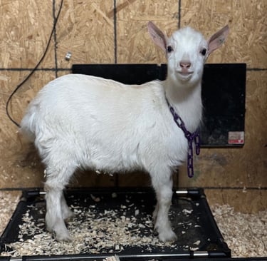 We currently have three Nigerian Dwarf bucks in our herd. Stratton Creek Bad Moon Rising is our patriarch at almost two years old. His son, Knispel Farms Moon Dance is poised to become our next herd sire, bringing in fresh genetics that we are thrilled about. By closely monitoring the growth rates, maternal milking volumes and overall conformation of these bucks, we aim to refine our future breeding plans, ensuring that we continue to enhance the quality and characteristics of our herd for years to come.
