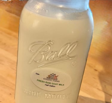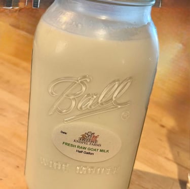 Raw Milk Enjoy our premium fresh raw goat milk, now available in convenient 1/2 gallon glass jars. Our goat milk is sourced from healthy, hand-raised goats that are milked twice daily, ensuring you receive the freshest product possible. Each bottle is filled with the rich, creamy goodness that goat milk enthusiasts cherish for its unique flavor and numerous health benefits. Why choose our raw goat milk? Goat milk is known for being easier to digest than cow's milk, making it an excellent alternative for those with lactose sensitivities. Packed with essential nutrients, including vitamins A, D, and B12, calcium, and potassium, our goat milk is a powerhouse of nourishment. Our goats are raised in a natural environment, fed a wholesome diet free from hormones and antibiotics. This commitment to quality not only benefits the health of our goats but also enhances the flavor of the milk, providing you with a product that is both delicious and wholesome.