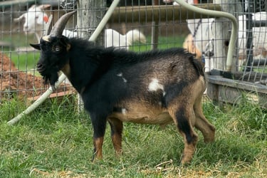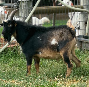We currently have two Nigerian Dwarf bucks in our herd. Stratton Creek Bad Moon Rising is our patriarch at almost two years old. His son, Knispel Farms Moon Dance is poised to become our next herd sire, bringing in fresh genetics that we are thrilled about. By closely monitoring the growth rates, maternal milking volumes and overall conformation of these bucks, we aim to refine our future breeding plans, ensuring that we continue to enhance the quality and characteristics of our herd for years to come.
