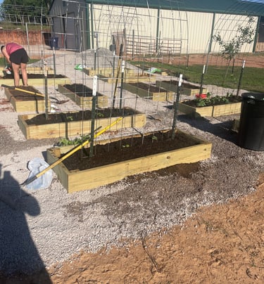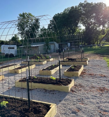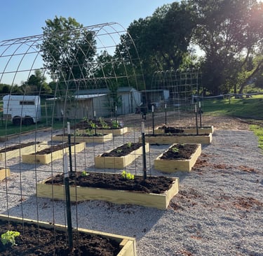 One of our most ambitious summer projects was the creation of 14 new raised beds, where we planted a diverse assortment of fruits and vegetables. To support our climbing plants, we constructed trellises specifically for cucumbers, watermelon, cantaloupe, and pumpkins. These new beds are conveniently located beside our fruit trees, which include apple, plum, and pear varieties, creating a harmonious garden landscape. To enhance our harvest, we also introduced blackberries, blueberries, and raspberries, complementing the vegetables and enriching our garden's biodiversity. This initiative not only aims to boost our food production but also to create a more vibrant and sustainable growing environment.